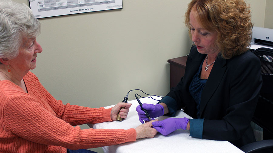 Barbara duing an EAV computerized health test seesion. (read more)
